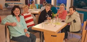 Es findet ein Austausch untereinander mit verschiedenen Themen an dafür bestimmten Tischen statt.