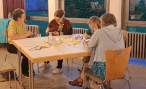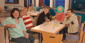 Es findet ein Austausch untereinander mit verschiedenen Themen an dafür bestimmten Tischen statt.